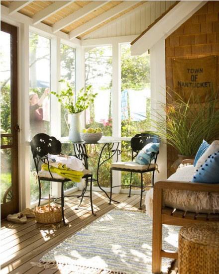封闭阳台,最为常见的就是以玻璃落地窗直接封闭阳台,这样既保持阳台的光亮,又能遮风挡雨,非常的美观实用。