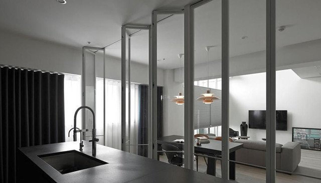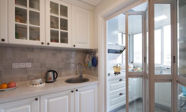 厨房门除了装推拉门外,折叠门也完全能够胜任。相比推拉门,折叠门所占用的空间更小,完全打开,厨房就能从独立式转成开放式。