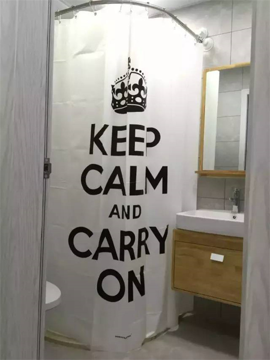 像一些只有2平米左右的卫生间,就没办法彻底干湿分离了,你可以选择把浴帘放在马桶和浴室柜之间,让马桶位于淋浴区内。